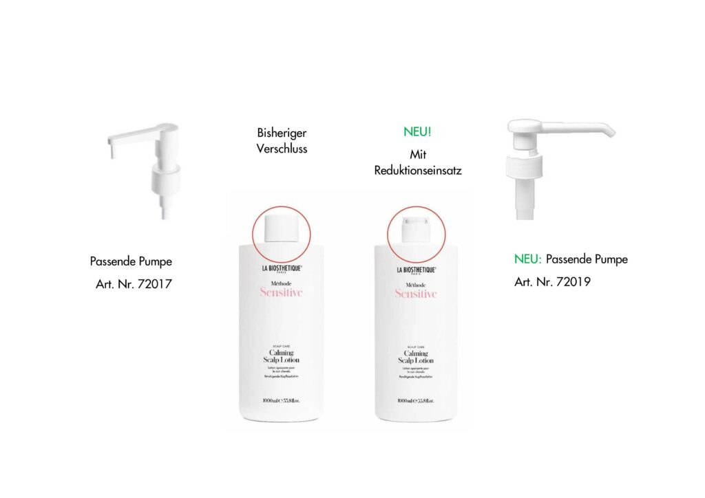 Die 1000 ml Flaschen der neuen Méthode Sensitive sind die ersten mit diesem neuen Gewinde und den neuen Pumpen. Wir werden sukzessive alle 1000 ml Flaschen umstellen.
